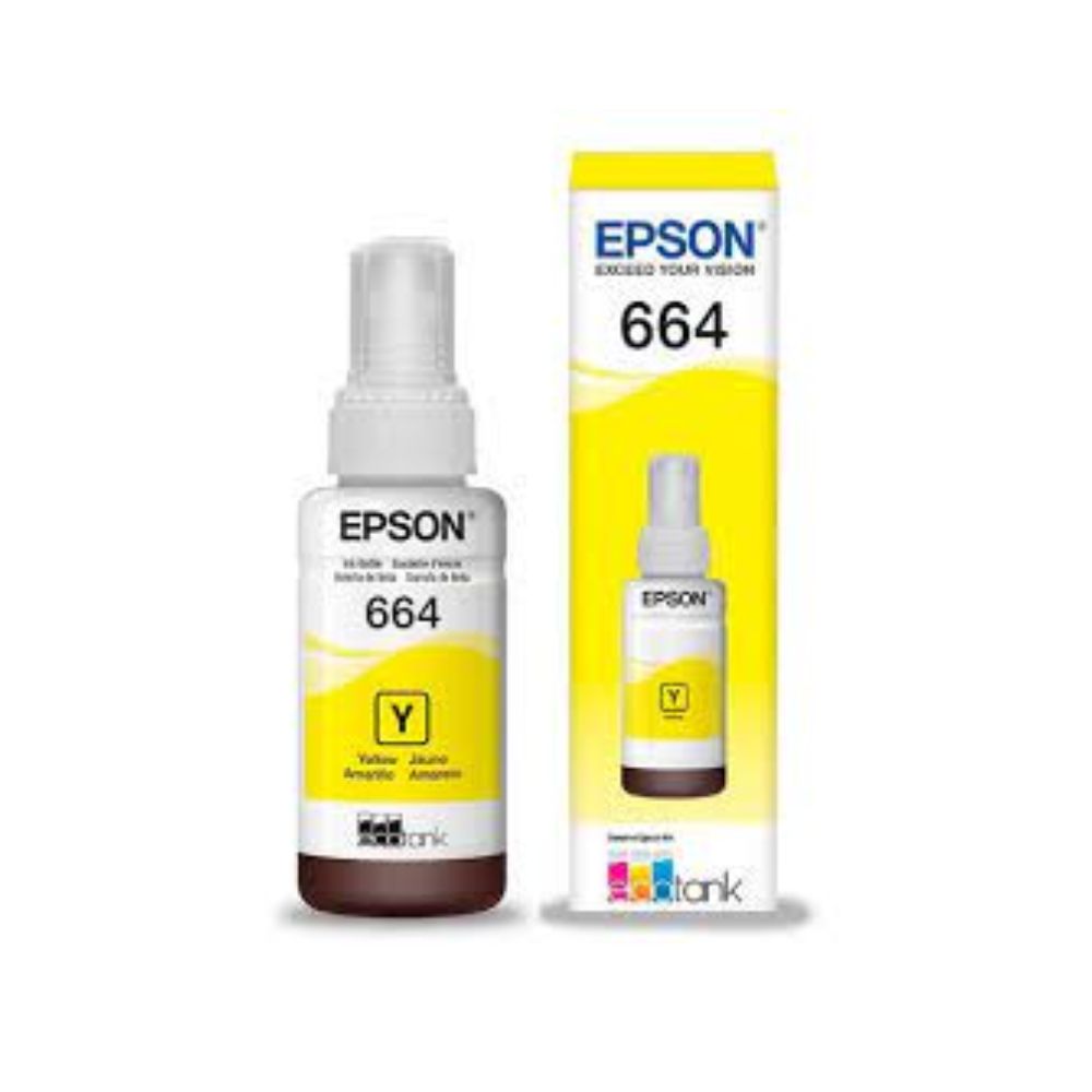 Botella de Tinta Original Epson T664420-AL Amarillo Marca: Epson ® Modelo: T664420-AL. Color: Amarillo. Contenido: 70 ml. Rendimiento: 6.500 Páginas. Compatibilidad : L110 / L120 / L121 / L210 / L220 / L355 /